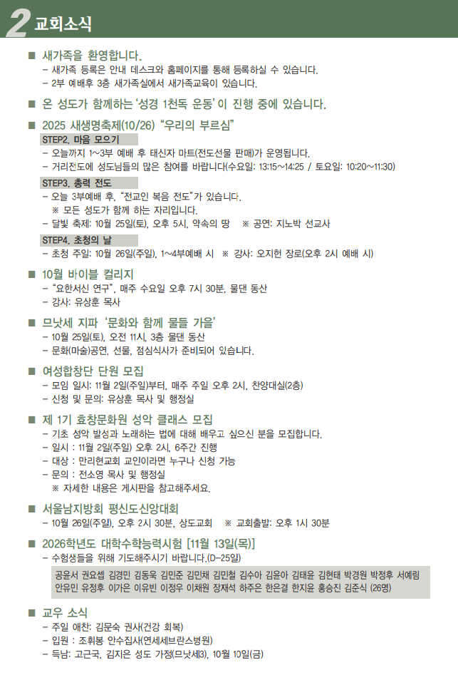 2025³âµµ 10¿ù 26ÀÏ ±³È¸¼Ò½Ä